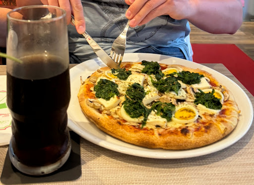 Interieur: Die Sitzmöbel sind teils so verschlissen, dass eine Erneuerung mehr als überfällig wäre. Die Kunstlederstühle sind brüchig und aufgerissen im Polsterbereich, die Samtsofas haben Flecken vom Essen der Vorgänger. Billige Dekoration auf den Tischen unterstreichen das Gesamtensemble. Preis-/ Leistung: Eine höchstens 24er Salame Prosciutto Pizza für 10 Euro, der Teig zu hart, der Belag zu gering, geschmacklich fad. Meine Frau hatte Tagliatelle mit Hähnchenfleisch in Sahnesoße. Scheinbar komplett ungewürzt, schmeckte nur nach Pasta in aufgewärmter Sahne, das Ganze für 12 Euro mit 3 kalten, trockenen Pizzabrötchen. Dazu die 0,2l KiBa zu 2,50 Euro, serviert im 0,15l Wasserglas waren die Krönung. In Summe waren für 2x Pizza, das Pastagericht und 3 Getränke dann 40,50 Euro fällig. Auf Kritik und Reklamationen im Nachgang wurde mit einem Lächeln und Schulterzucken reagiert.