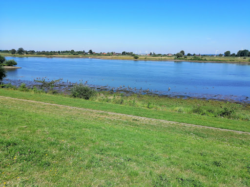 Read moreWir waren begeistert - ein schönes Café mit einem wirklich tollen Ausblick auf die Elbe und den Deich. Wir haben dort gefrühstückt. Das Frühstück war kein Schnäppchen, aber lecker und groß. Einen kleinen Minuspunkt gab es dennoch - dieser führte dann auch zu einem Stern Abzug. Wir haben per Email für 3 Erwachsene und 2 Kinder reserviert. Das wurde uns dann auch per Email so bestätigt. Dennoch war anscheinend nur für 3 Personen reserviert. Bei der Kellnerin, die uns begrüßt hat, führte das dann auch anscheinend zu einer kleinen Verstimmung - jedenfalls empfanden wir ihre Reaktion als nicht besonders freundlich. Fehler passieren - wir haben trotzdem sofort einen Platz bekommen, wir haben das hat nicht so richtig als Problem wahrgenommen. Die Reaktion der Kellnerin hat uns dennoch überrascht und wir haben sie als nicht sonderlich professionell wahrgenommen. Im weiteren Verlauf war sie Kellnerin, die uns bedient hat (eine andere als die, die uns begrüßt hat), dann aber...