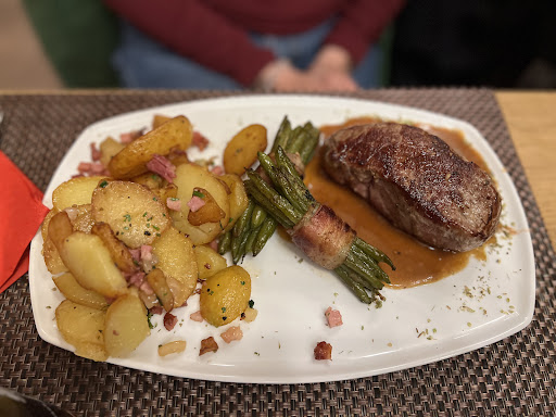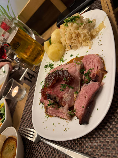 Contra/ Verbesserungsvorschläge : Bayrische Haxe war um 19h bereits nicht mehr verfügbar Bayrischer Abend , aber absolut keine entsprechende Deko (Servierten oder Wimpelketten z.B.) das Essen war leider schon recht abgekühlt beim Servieren 1 Gericht, was extrem kühl und Burgerfleisch noch tw. roh war - wurde anstandslos ausgetauscht , dann war es wirklich super lecker auf kleine Dinge noch etwas mehr achten (Steakmesser fehlte bei allen 3 bestellten Rumpsteaks ) ; Kerzen auf dem Tisch wurden nicht angezündet ) viel zu viele Tische, man sitzt zu eng beeinander , es fehlt die Privatsphäre Live Musik gerne schon früher als 21h starten Preise für die Menge an Essen etwas zu hoch; ggf. zum Bsp. zu den Hauptgerichten noch einen kleinen Salat vorweg servieren oder etwas frisches Brot)