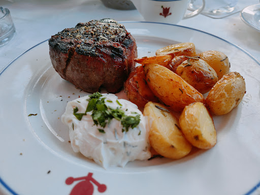 Read moreDas Fleisch war sehr lecker, total zart und super auf den Punkt gegrillt. Der Oktopus im Meeresfrüchtesalat war etwas hart und dadurch leicht trocken, aber insgesamt ok. Leider haben wir 25 Minuten warten müssen, bis sich jemanden fand, der unsere Bestellung aufnahm, das war definitiv zu lang, insbesondere auf die Getränkebestellung so lange zu warten... Baguette mit toller Pesto-Aioli waren zum Auftakt eine sehr nette Geste. Auf die Vorspeise folgte ohne jegliche Pause unmittelbar das Hauptgericht - kein gutes timing. Das Innere des Restaurants ist sehr gemütlich, die anfangs noch als behaglich empfundene Akkordeonmusik vom Band wirkte nach 2 Stunden Aufenthalt nicht mehr ganz so frisch. Der Innenhof ist ausgesprochen schön. Das Preis-Leistungs-Verhältnis für das Essen ist ok, 8 Euro für eine 0,75 l Flasche Wasser ist überzogen. Immerhin werden die Getränke im Glas nicht "auf dem Strich endend" eingeschänkt. Insgesamt hat es uns gut gefallen und wir werden gerne...
