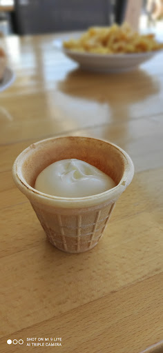 Read moreEin typischer Strandimbiss. Überteuert, geschmacklich naja. Burger: Cheeseburger: Die Soßenmischung war jetzt nicht berauschend, wir wissen nicht mal richtig was es war, es sah aus wie eine Cocktailsoße die mit Kräutern verfeinert wurde. Also Geschmacklich für uns kein Grund das wieder zu essen. Der Party war aus der TK wie man es aus einem Discounter kennt, leider geschmacklich auch nicht so prall, versalzen, kann man besser zuhause machen. Der Burgerbun schmeckte ebenfalls nach Discounterware, für den Preis mach ich die zuhause besser. Burger 2: die Soße war eine Knoblauchsoße die viel zu viel Pfeffer enthielt. Currywurst: die Soße war mit Geschmacksverstärkern bereichert und daher leider auch Geschmacklich eher scharf als lecker, jetzt nicht so scharf das man sich die Zunge verätzt aber sie war echt kein Hit, die Wurst selber war okay. Pommes: teilweise trocken wie die etwas zu lange stehenden Pommes bei McDonalds. Und nun zu etwas was uns erschreckt hat. Die Soßen kommen in eine Eiswaffel (siehe Bild). Also sorry, aber wer will sowas denn essen. Wenn ich da Mayo oder Ketchup raus dippe, dann esse ich doch danach nicht mehr die Waffel, denn Ketchup ist säuerlich und ebenfalls Mayo ist mit Essig vermischt, das bedeutet soviel wie, wenn die Soße nicht weg ist bzw die Waffel, dann wird das weggeschmissen und das muss nicht sein, da gibt es bestimmt andere Möglichkeiten. Und das letzte zu dieser Bewertung. Die Buchstaben die im Außenbereich stehen. Diese sind nicht festgemacht, das bedeutet sie stehen lose. Was auch bedeutet in einer Tourismusbranche, es sind viele Kinder unterwegs die da unter klettern,dass wiederum bedeutet eine enorme Verletzungsgefahr wenn die...