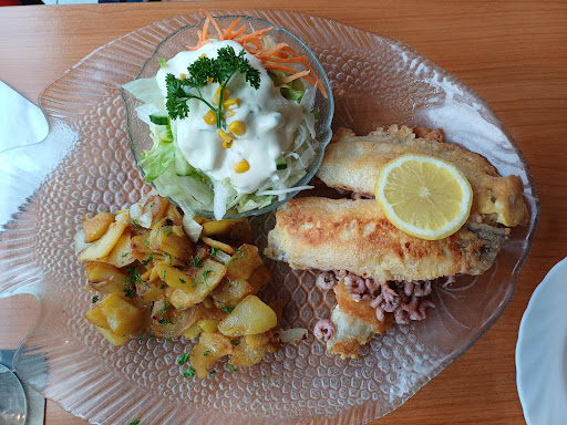 Read moreSelten habe ich ein so schlechtes Restaurant besucht. Ich hatte das Seelachsfilet mit Bratkartoffeln, der Fisch selbst war okay, nichts besonderes aber auch nichts schlechtes. Die Bratkartoffeln waren kalt und zudem sehr fettig. Meine Frau und meine Kinder sind keine Fischesser und haben deshalb auf Schnitzel mit Pommes und Nuggets mit Pommes zurück gegriffen. Die Teller waren sehr trostlos belegt, die Nuggets trieften vor Fett, wurden scheinbar ein zweites Mal frittiert und waren somit ungenießbar. Die Pommes waren kalt und völlig übersalzen. Die Krönung aber war der Service. Der Kollege der unseren Tisch bedient hat war gefühlt in allem unfähig, beim Essen bringen hat er die halbe Pommes meiner Frau auf dem Tisch verteilt, hat dann viel zu früh angefangen den Tisch wieder abzuräumen und hat dabei die Apfelschorle meines Sohnes umgeschmissen und über meiner Hose verteilt. Es kam ein schnelles „Entschuldigung“ und das war’s. Es gab weder eine neue Apfelschorle für meinen Sohn, noch eine Preisminderung aufgrund dessen das mein Sohn nur eine halbe Apfelschorle hatte. Zusammengefasst war das ein erster und letzter Besuch in einem der schlechtesten Restaurants in...