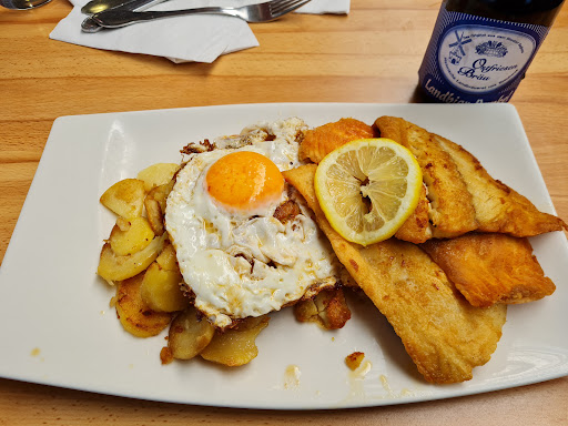 Und genau zuletzt das Essen hat leider aber stark in der Qualität nachgelassen: Alles ist nur noch extrem fettig, geschmacklos und fad... die Pommes waren nicht durch fritiert und innen noch leicht roh und hart, die Bratkartoffeln extrem fettig und matschig/laberig, die Scholle matschig und fad, der Backfisch mit dicker und trockener Panade... dazu kommt: es ist alles sehr lieblos serviert, man möchte fast schon sagen "hingeklatscht". Dies erklärt dann auch - warum das Essen nach der Bestellung bereits wenige Minuten später fertig zum Abholen an der SB-Theke ist... wahrscheinlich alles vorgewärmt um schnell die Besucher "abzufertigen".