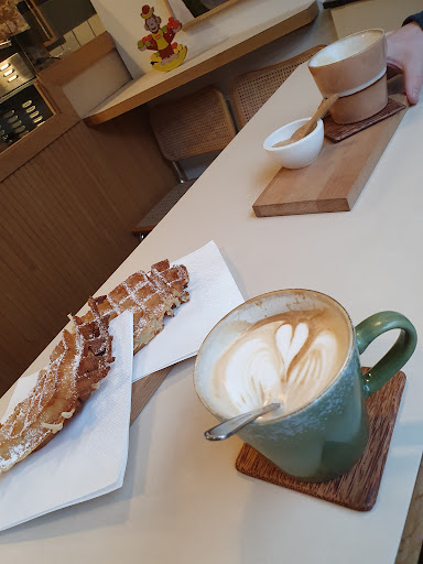 Read moreWir haben heute auf dem Rückweg aus dem Urlaub einen kurzen Stopp in Esens gemacht und sind in diesem kleinen feinen Laden eingekehrt. Es war feinstes ostfriesisches Schietwetter und was soll ich sagen...es hat sich gelohnt. 😉 Super netter Besitzer, bester Cappuccino (einmal mit und einmal ohne Koffein) und eine leckere Waffel zum ersten Aufwärmen. Im Anschluss gab es Bricks mit einem hausgemachten Eistee. Alles übrigens sehr ansprechend serviert 😋. Die Wahl fiel auf einen Brick mit Brokkoli und einen mit Hackfleisch. Beide waren wirklich hervorragend und wir werden definitiv wiederkommen.
