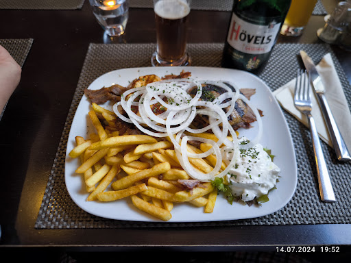 Read moreEin ganz normaler Sonntag Abend, Restaurant ca. 80% gefüllt. Wartezeit auf das Essen 1 ganze geschlagene Stunde. Leute die nach uns kamen hatten schon ihr Gericht. Wir hatten 2 ganz normale Grillteller bestellt für je knapp 20 Euro, also nix extravagantes. Als das Essen dann endlich auf Nachfrage mal kam, war das leckerste der Bifteki, der Tsaziki und die Pommes. Und ein kleiner Salat, der war schön frisch. Aber der Rest... 🤮 Souflaki war total trocken und konnte nicht gegessen werden, auch fehlte jede Art von Gewürz. Auch das Gyros war total trocken und schmeckte nach nichts. Auch war über die Hälfte vom Gyros kleiner als 1 cm, viele Stücke nur Millimeter groß. Deswegen natürlich noch trockener als es eh schon war. Hab es der Bedienung mitgeteilt, kam aber keine Reaktion, obwohl die Bedienung an sich relativ aufmerksam war. Habe dann drum gebeten es mir einzupacken für den Hund, weil es für mich nicht genießbar war. Das wurde dann auch gemacht. Fazit : über 50 Euro für Pommes, Bifteki und etwas Salat, der Rest für den Hund...... Also hier nie wieder, fast jede Pommesbude hat da...