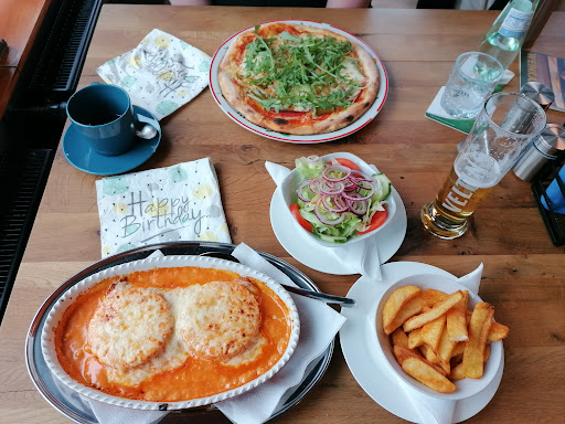 Food was very delicious, great tasting pizzas and pastas and some other dishes. Everything looked organized and clean. Place was nicely decorated. Staff were nice and professional. Price was logical as well. You can sit both inside and outside.
