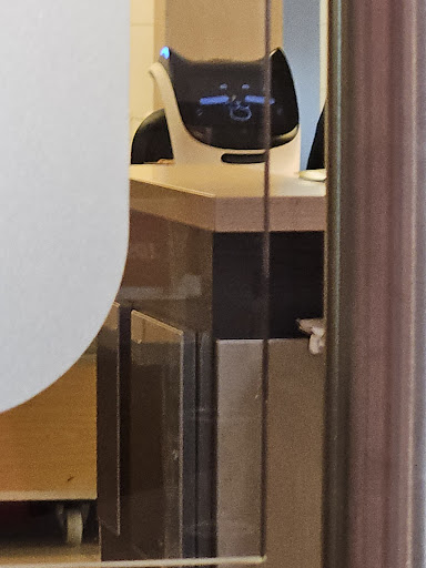 Skurril: An uns fuhr ständig ein "Service-Roboter"mit nerviger Musik vorbei... .
