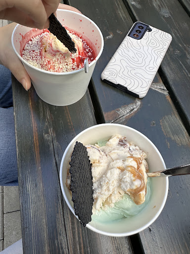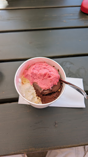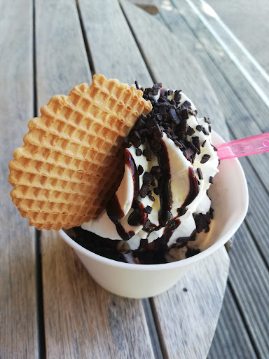 Read moreDas Eis hat uns gut geschmeckt. Das kann man sagen. Das Ambiente hat uns nicht gefallen. Draußen eher ungemütlich und lieblos Picknick-Bänke hingestellt. Keine Pflanzen oder ähnliches , keine Deko auf den Tischen. Unser Eis mussten wir uns holen, was für uns vollkommen ok ist. Aber auch wenn ich vor Ort esse, gab es nur einen Pappbecher, was wir nicht nachvollziehen können. Spaghettieis im Pappbecher? Das hat uns nicht gefallen. Am Ende haben wir für unsere Eisbecher 32 Euro bezahlt, fände ich mit Service und nett angerichtet vollkommen ok. Aber nicht im Pappbecher bei Selbstbedienung. Wir haben es getestet würden es aber aufgrund des gesamten Erlebnisses vor Ort nicht...