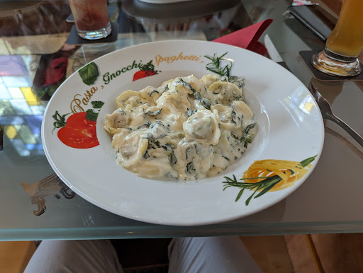 Sm Freitag waren wir im Restaurant Toscana. Das Essen war sehr lecker. Wir hatten Champions gefüllt nach Art des Hauses, mit Knoblauch uns Käse Überbacken als Vorspeise und 3 Medalions in Tomaten Sahne Soße. Dazu Pommes und einen sehr leckeren Salat mit eine Essig Öl Vinaigrette. Es war alles auf den Punkt gegart. Sie Champions super Lecker . Wer nicht stark Knoblauch mag sollte lieber etwas anderes essen. Aber das steht auch so in der Karte. Die Medaillons waren schön saftig und auf den Punkt gegart. Das Ambiente könnte ein bisschen gemütlicher sein. Die weißen Vorhänge auf weißer Wand wirken etwas kühl. Die Bestuhlung ist schon älter. Ist zwar sauber aber es könnte mal etwas modernes her. Das Personal war spitze. Super freundlich und stehts bemüht um unser Wohl. Immer ein Lächeln und wir mußten nie warten obwohl der Laden wirklich gut besucht war. Die Kellnerin an unserem Tisch war witzig und charmant. So hatten wir mit 4 Personen so eine schönen Abend, das wir die letzte waren und es nicht mal bemerkten. Macht weiter so , wir...