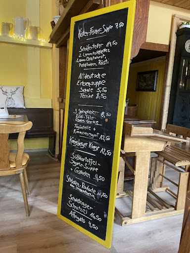 Read moreDas Essen war gut, allerdings von der Menge her überschaubar! Ich hatte nach einem Seniorenteller gefragt und war überzeugt, einen bekommen zu haben! Aber auf der Rechnung stand der volle Preis des Gerichts, und der Wirt versicherte uns, das der Wunsch nach einem Seniorenteller bei ihm gar nicht angekommen war... Die Übernachtung und das Frühstück haben aber sehr enttäuscht: Zimmer geschätzt aus den 60er Jahren des vorigen Jahrhunderts oder noch früher, mit quietschenden Holzdielen bei jedem Schritt, sodass wir uns nachts gegenseitig gestört haben und gleichzeitig sehr froh waren, die einzigen Gäste zu sein: Nicht auszudenken, welche nächtliche Geräuschkulisse uns sonst wach gehalten und genervt hätte... Das Frühstück wurde uns schon abends bereitgestellt, da morgens keine Bedienung im Haus war, mit der Folge, dass es weder frische Brötchen noch Wurst und Orangensaft gab und die Eier vom Vortag waren. Den Kaffee mussten wir uns selbst aufbrühen und für den Tee meines Mannes wurde uns ein einziger Teebeutel neben den halb gefüllten Wasserkocher gelegt. An Brot gab es sechs kleine Scheiben, von denen wir kaum satt wurden. Zum Glück hatten wir noch eine Rest-Schnitte von unserem Proviant vom Vortag! Insgesamt würden wir die warme Küche als durchaus gut bewerten, von einer Ü/F aber ausdrücklich abraten. Hier stimmt das Preis-Leistungsverhältnis auf...