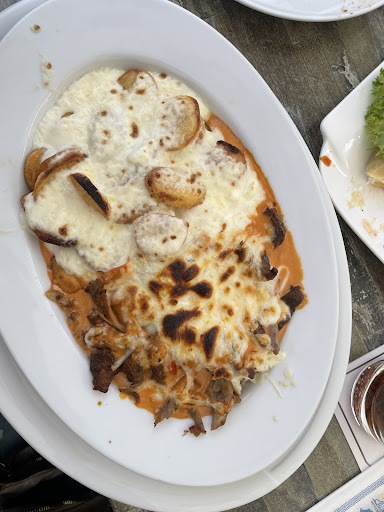 Read moreWir waren hungrig und hatten Lust auf griechisch... Dementsprechend bestellten wir die Nr. 72 Gyrospfännchen in Metaxasoße mit Tomatenreis und Nr. 272 Mixplatte spezial. Das Essen war lecker, die Fleischvarianten der Mixplatte durchaus alle drei sehr empfehlenswert... Die Portionen waren ausreichend. Warum nur 4 statt 5 Sterne? Das liegt rein am subjektiven Empfinden: Uns lag nicht das Anrichten des durchaus leckeren Essens. Das Fleisch war direkt auf dem Gemüse serviert. Separat bestellte Röstzwiebeln waren lecker aber auch sehr fettig. Der Beilagensalat war fertige Rohkost. Der Service war aufmerksam und zuvorkommend. Das Essen war also lecker und die Getränke gut gekühlt. Neben Wasser und Cola hatten wir noch Roséwein... War ebenfalls gut aber eben auch keine Supertraube. Es gab Uzo bis zum Abwinken... Trug zur guten Stimmung bei. Alles in allem: Meckern auf hohem Niveau... Von uns eine...