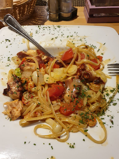 Ich habe bisher 2 Pizzen und 1 Salat mit meeresfrüchten dort gegessen. Die Pizzen waren beide seeehr lecker, wie man sich eine italienische Pizza vorstellt. Und der Salat mit angebratenen meeresfrüchten hat auch sehr gut geschmeckt. Die Bedienung als auch der Chef waren sehr freundlich. Einen Punkt Abzug gebe ich fuer das nicht so gemütliche und nicht so gepflegte Ambiente, ob draussen oder drinnen, und die Unart, die Tür des raucherbereichs, die sich ziemlich zentral im Restaurant befindet, offen stehen zu lassen, so dass es überall nach Rauch riecht. Das ist für Leute, die nicht rauchen, eine Zumutung, vor allem, wenn man essen geht, da ist das Essen dann kein...