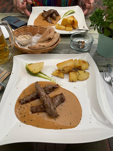 Gewöhnlich gebe ich keine schlechten Bewertungen ab, aber hier mache ich eine Ausnahme: das schlechteste Schweineschnitzel aller Zeiten muss gewürdigt werden. Ich unterstelle das der Koch mich mit jemanden verwechselt hat wo er nicht leiden kann: das eh schon tote Schwein nochmal richtig tot geklopft (ich habe das Hämmern gehört) und dann in altem Fett fein in Richtung Schuhsohle gegart. Die dazu gelieferten Kartoffelecken mit hübschen Rosmarinzweig spielten in der selben Leistungsklasse. Nur meine Kinderstube hat mich daran gehindert auf die Frage der Servicekraft ob es geschmeckt zu antworten. Ich persönlich werde den Laden nicht wieder von innen sehen. Vielleicht hatte ich einfach nur Pech, versucht es selber. Aber ich rate davon ab ein Schnitzel am Samstag nach 13:00 zu bestellen. Positiv: Ambiente ist ok. Rollstuhl kein Problem (Rampe), Personal freundlich. Ausschlaggebend aber ist das Essen - und das war nicht mal mehr grottig, es war schlechter.