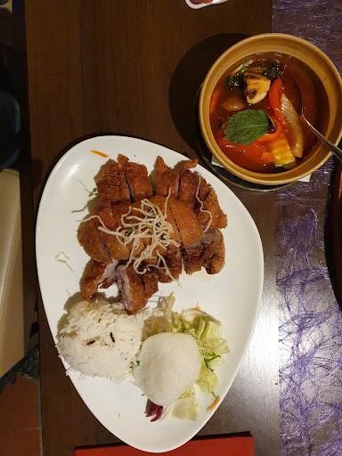 Read moreDer Mittagstisch ist kaum zu empfehlen. Erster Versuch Ente mit Chilisauce vorab eine Frühlingsrolle Ente war nur lauwarm Salat auf dem Teller war pur nicht mal ein Hauch von Dressing, Frühlingsrolle triefte vor Öl und die drei Brocken Fleisch darin schmeckten wie das tranige Öl was auch keinen Halt vor dem Kohl darin machte. Das ging dann mal zurück, statt das man es besser machen möchte, sagte man mir, ich solle was anderes bestellen, denn nochmal das gleiche bringt nichts.... gesagt getan Huhn mit teriyaki sauce, Soße weit gefehlt, eine Öl- Lache überzog das essen, mein Mund war innerlich eingekremt. Das Hähnchen Brust Filet war auch nicht echt, irgendetwas gepresstet. Drei Gabeln voll und ich hatte gegessen..... ließ auch das zurückgehen und bekam dann auch noch die Rechnung dafür obwohl beide Gerichte nicht essbar waren. Traurig Traurig. So schlechten Mittagstisch habe ich noch nie gegessen, lässt nur hoffen, dass die positiven posts von der Abendkarte stammen und ein anderer Koch dann sein Werk vollbringt.auf dem Bild ist oben das Öl zu sehen ohne es in die Richtung laufen zu lassen...... wieviel wäre da wenn ich den Teller schräg halten würde? Nie wieder und auch keine...