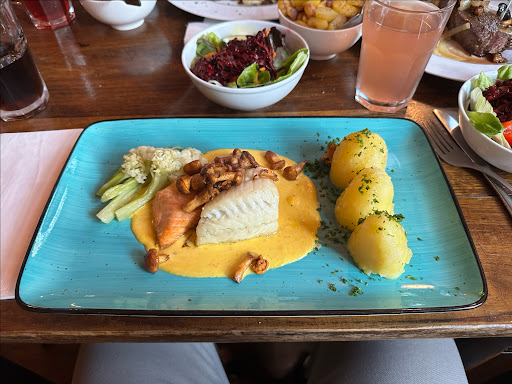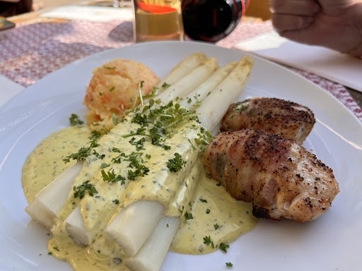 Freundliche Begrüssung. Wir hatten reserviert(3 Personen) und sollten direkt an der Ausgangstür sitzen. Nach einigem hin und her (der Wirt meinte"...der nächste Gast möchte auch nicht dort sitzen...) gab es für uns einen netten alternativen Tisch. Die Bedienung sehr freundlich und aufmerksam. Der Gruss aus der Küche (Brot und Kräuterrahm) sehr lecker. Kaum hatten wir dies verspeist und keine 20 Minuten nachdem wir das Lokal betreten hatten war auch schon das Essen da. Ein wenig mehr Wartezeit hätte uns gut gefallen. Zwei der drei Hauptgerichte waren nicht wirklich heiss. Die Preise für das Gebotene zu hoch - bei 25 € für ein Hauptgericht erwarte ich mehr ...das Ambiente insgesamt ansprechend, Parkmöglichkeiten ausreichend. Leider reicht dies nicht und wir werden wohl eher andere Restaurants im schönen...