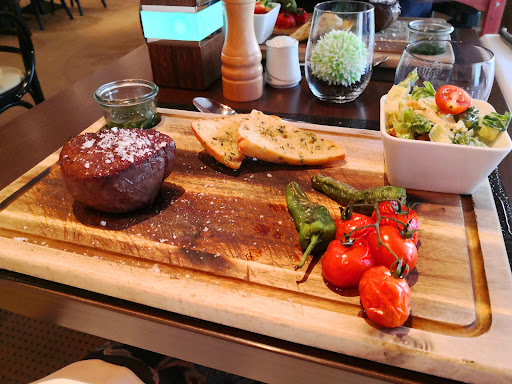 Mit Michelinstern ausgezeichneter Koch. Habe jetzt schon mehrfach dort gegessen und bin begeistert! Die angebotenen Speisen sind erstklassig und ein Genuss nicht nur für den Gaumen, sondern auch für's Auge!! Das Preis- Leistungsverhältnis ist für seine Qualität sehr fair und vergleichsweise niedrig. Das Ambiente ist sehr gemütlich und modern. Es herrscht keine Hektik und das Personal ist angenehm freundlich! Wer sich eines der verschiedenen Steaks bestellt, bekommt hier hochwertiges Fleisch von amerikanischen Rindern. Durch die Zubereitung im 800Grad Ofen wird der Genuss zum besonderen Erlebnis! All dies beweist die Platzierung unter den Topp40 der Steakhäuser in Deutschland, lt "Feinschmecker". Wer gerne nach dem leckeren Essen noch abseits des Restaurantbereiches eine feine Zigarre oder Zigarette rauchen, oder noch einen guten Tropfen kosten möchte, kann es in der angrenzenden Weinlounge gemütlich genießen. Wenn man zum richtigen Zeitpunkt dort verweilt, hat man mit etwas Glück auch die Gelegenheit das sympatische Geschäftsführerehepaar in deren verdienter Pause kennenzulernen um sich mit beiden noch nett unterhalten zu können!😊 Von mir gibt's die volle...