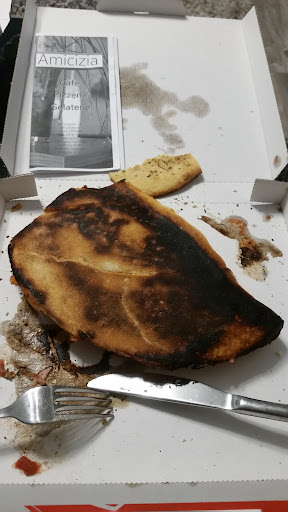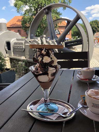 Read moreIch kam an und nach 1min wurde die Karte gebracht. Es gab natürlich Pizza, Pasta und natürlich Eis. Die erste Bedingung war nicht so freundlich aus und hat auch nicht so glücklich geguckt. Der zweite war ein sehr freundlich und hat auch gelächelt er hat die Bestellung gleich aufgenommen. Nach zwei Minuten kam schon das Trinken und nach ungefähr 8 min kam schon die frische Pizza. Für eine kleine Restaurantpizza sehr lecker und hat nur 3,50€ gekostet. An manchen Stellen am Rande war nicht ganz so gut aber das ist wirklich kritisierten auf hohem Niveau. Als ich aufgegessen habe wurde der Teller gleich mitgenommen und ich habe mir gleich ein Nachtisch bestellt: Spaghetti Fragola (Spagettieis mit Erdbeeren). Das Eis hat sehr gut mit der gefrorenen Sahne drin geschmeckt die Erdbeeren waren auch frisch. Also in großen und ganzen sehr gut wenn es nicht direkt an der Hauptstraße wäre. Nach na Zeit hat man sich dran gewöhnt und sonnst haben sie es mit den Schirmen gut Schattig in der Sonne gemacht.