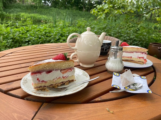 Read moreTranquil gem in the middle of nature. Chickens running around your feet (but protect your cake from them), you can hear frogs and birds and sit directly by the water. Lots of vegan options, both sweet and savoury....