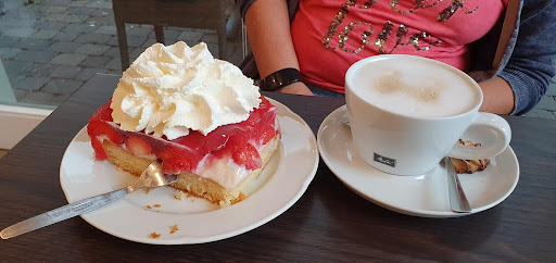 Read moreEin Café, wo man schon vom Duft des selbstgebackenen Kuchen magisch angezogen wird. Das Café liegt schön abseits an einen Fahrradweg.Es ist ein schmuckes Café mit einem grossen Aussenbereich und vielen Tischen und Stühlen sowie Sonnenschirmen. Für die kühleren Stunden stehen Heizpilze zur Verfügung. Die Bediengungen sind sehr freundlich und schnell. Wir waren zur Kaffee ☕Zeit da und ich kann nur sagen,, göttlich,, Wir hatten Apfel -streuselkuchen mit Sahne , Herrencreme'torte, Käse-Sahne Torte und sie waren alle mega lecker. Der Apfelkuchen war noch leicht warm,mmmhh! Man kann auch etwas zum Mittagessen bekommen aber da weiß ich nicht genau was es gibt. Ev trag ich das nochmal nach Erwähnenswert ist auch noch ei. Kleiner Spielplatz im Garten wo die kleinen spielen können,dort stehen auch noch Obstbäume wo man die ein oder andre Pflaume stibitzen kann,während die großen auf der...