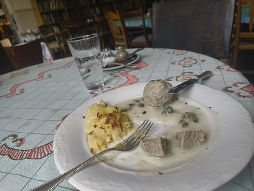 Nach etwa 5 Minuten überreichte er mir das bestellte Stück Kuchen. Ich wartete geduldig mindestens weitere 25 Minuten um meine zwei Tassen Kaffee entgegennehmen zu können. Während meiner Wartezeit hatte ich Gelegenheit den Fliegen und Wespen beim Fressen der Schlagsahne zuzusehen, die aus der nicht gereinigten Düse der Schlagsahne-Maschine quoll. Na gut, dachte ich, es ist halt einen alte Dorfschule und kein „echtes Café “ und der nette junge Mann auch eher ein Schüler als ein echter Barista. „Zucker können Sie sich beim Rausgehen von dem Tisch dort vorn nehmen!“ versuchte der junge Mann mir hilfsbereit mitzuteilen. Auf dem „Tisch dort vorn“ war aber kein Zucker und so suchte er zwischen alten Büchern auf irgendeinem anderen alten Tisch nach Zucker für meinen Kaffee und wurde irgendwann auch fündig!