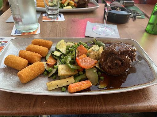 Read moreWir waren gestern das erste mal dort. Super Ambiente und toll eingerichtet. Das Essen war gut. Nicht mehr nicht weniger. Aber die Portionen waren wirklich sehr "übersichtlich". Der Grillteller bestand aus drei ziemlich dünn geschnittenen Schweinemedaillons und einem kleinen Hüftsteak, VIER Kroketten und etwas Gemüse. Bei den Preisen hätte ich eigentlich erwartet, dass jeder satt wird und nicht hungrig aufsteht, um sich zu Hause noch ein Brot zu machen. Zum Burger mit Pommes wurden, wie bei bekannten Fastfoodketten, Mayo und Ketchup in einer kleinen Tüte dazu gelegt. Bei uns wurden leider 4 Getränke vergessen, die wir nach knapp 30 Minuten auch nicht mehr benötigten. Zum Glück tauchten die Getränke am Ende noch auf. Auf der Rechnung. Ich denke da ist noch viel Luft nach oben. Würde meiner Bewertung gerne mehr Sterne geben, nach einem nächsten Besuch.