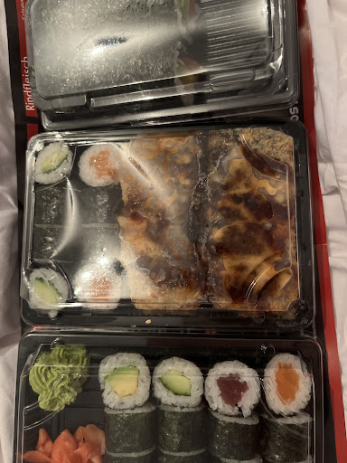 Read moreWir sind aufgrund der Bewertungen dort hin gefahren und haben zu zweit verschiedene Sushi bestellt: das Inside Out Set und zwei verschiedene Ura Maki. Wir haben drin gesessen, es war sauber und nicht so überladen und kitschig dekoriert, wie man das von vielen Asia-Restaurants kennt. Es sind auch nicht zu viele Tische plaziert mit angenehmen Abstand. Die Sushi war gut, teilweise richtig groß und schön angerichtet. Man konnte die einzelnen Bestandteile gut rausschmecken und es gibt sehr, sehr viel Auswahl. Hier stimmt Qualität und Preis/Leistung: das Restaurant war gut besucht, viele Abholer, viele Auslieferungen. Wir kommen auch...