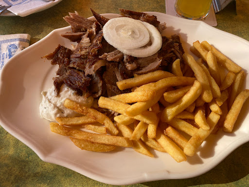 Read moreAmbiente recht schön ,dort trotz direkt an einer Hauptstraße recht ruhig innen. Außen sitzen ist auch schön . Und nun der Hauptteil: Grundsätzlich erstmal ..die Portionen sind groß .. die Pommes die es gab waren leider todfrittiert wobei ich sagen muss das des Frittieröl wohl nicht mehr frisch war ,was die Farbe und Geschmack der Pommes aussagte ! Das Gyrosfleisch schwamm in einer Pfütze voll fett welches den Geschmack nicht verbesserte . Das Fleisch schmeckt anders wie erwartet , nicht wie ich es bei den vielen anderen Griechenrestaurants gewohnt bin . Ich finde es leider enttäuschend .. an Salz wird im Großen und Ganzen gespart , ob bei den Fritten , Reis oder dem Beilagensalat , eine gewisse würze fehlt gänzlich . Im Beilagen Salat lag eine viertel große Tomate am Stück , nicht mundgerecht geschnitten . Im Reis gibt es Gemüse aus der Dose sowie beim anderen Gerichten Pilze aus der Dose .. da bleibt leider die Qualität und der Geschmack auf der Strecke . Da ist noch extrem viel Luft nach oben zum verbessern .. Man sollte nicht an frischen Zutaten sparen !! Ich versteh leider die anderen Bewertungen nicht wirklich was den Geschmack und die Qualität angeht . Wir haben es jetzt einmal getestet und bestimmt erstmal nicht wieder .. auf einen Sonntag Nachmittag war das Geschäft so gut wie leer .. wenn ich die anderen Restaurants in der Umgebung mir anschau , brennt dagegen bei denen die Hütte!!!