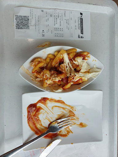 Die Pommes und die Currysauce und die Mayonnaise haben mir überhaupt keine Chance gelassen zu MEKKERN.