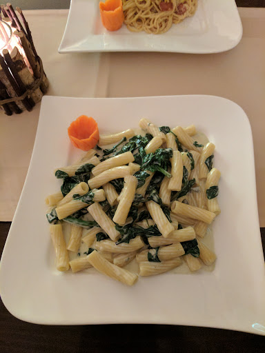 Enttäuschung pur.... nachdem wir uns von der durchaus positiven Bewertung bei Google haben hierher leiten lassen, was ja eigentlich sonst auch recht gute Erfahrungen gebracht hat, ist das heute mal so richtig in die Hose gegangen. Der erste Eindruck, war wie schon öfter eher mäßig, altbacken, Kantinen Flair, aber die eigene Erfahrung sagt, das ist ja nicht zwingend mit der Qualität von Bedienung und Speisen im Einklang zu sehen... Hier jedoch hat der erste Eindruck leider auch den abschließenden Eindruck bestätigt. Die Bedienung war nett, aber auch etwas überfordert mit der folgenden Situation. Nachdem wir unsere Bestellung aufgegeben hatten, Spaghetti mit Meersesfrüchten, Lasagne und Sonderwunsch Tagliatelle mit Gorgonzola Soße und frischem Spinat, haben wir geschlagene 55 min auf das Essen gewartet, ok dachten wir uns, nicht schön, aber wenn das Essen jetzt der erwarteten und auch bei diesem Preisniveau angebrachten Qualität entspricht, dann vergessen wir das mit der deutlich zu langen Wartezeit. Das Essen kam, ohne ein Wort der Entschuldigung zu der langen Wartezeit, obwohl die Bedienung ganz sicher schon unsere wartenden, fordernden und nicht zuletzt hungrigen Blicke zur Kenntnis genommen hatte. Erster Eindruck, ok Portionen überschaubar, eher auf Rentner oder Kinder Niveau, was ja bei der gleich sicher gigantisch guten Qualität auch noch in Ordnung geht... ABER was jetzt folgte ist einfach nur unterirdisch. Mein erster Versuch mit der Gabel meine Tagliatelle zu einem kleinen mundgerechten Paket zu drillen... keine Chance, verkocht, keine Spur von aldente, grrr. Frust, dann doch irgendwie etwas in den Mund bekommen, häääh kaum Gorgonzola Geschmack, dafür aber ordentlich Salz, Grenzbereich! Geschmack und Laune versaut! Die Spaghetti meiner Frau waren für ne Dorfpizzaria I.O., die Lasagne unserer Tochter, auch I.O. aber der frische gemischte Salat mit Schinken, mehr lieblosigkeit und Gleichgültigkeit geht kaum. Der wohl aus der 10er Packung Scheibenschinken entnommene Schinken war ohne Trennung noch in der 10er Schicht stückweise im Salat, erinnerte mich an Stücke eines Baumkuchens. Das geht so gar nicht. Nun denn, ich habe die Bedienung aufgesucht um, wie es sich für mich gehört eine leise Kritik anzubringen und somit die Chance für eine Entschuldigung und ggf. einer Wiedergutmachung zu geben. Mein Hinweis, dass ich nicht bereit bin die Tagliatelle und den Salat zu bezahlen wurde dezent weggelächelt. Tatsächlich kam dann nicht der Chef, der wie meine Rückfrage ergab, auch noch der Hauptverantwortliche Koch in der Küche war, sondern wieder die Bedienung, sichtlich unglücklich über diese Situation. Salat und Tagliatelle mussten wir nicht bezahlen, den Rest und diese unschöne Erfahrung schon. Fazit, hier wird man uns nicht wieder sehen, empfehlen können wir hier leider nichts, höchstens als Beispiel für, so geht man nicht mit seinen Kunden um, erst recht nicht wenn man die faire Chance zu einer Entschuldigung...