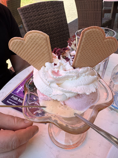 Read moreZum Kuchen- und Tortenangebot kann ich nichts sagen (war nach dem Durchzug des Rentnergeschwaders fast alles weg), Kaffee okay und heiße Schokolade gut (Eisgetränke um kurz nach 17 Uhr aus). Aber dieser Service ... Ey Leute, das geht gar nicht. Kann verstehen, dass nach der Stoßzeit alle ein wenig auf dem Zahnfleisch kriechen, aber überall nicht abgeräumte Tische, das Personal schwatzt hinter der Theke und hat in Teilen einen Ton am Leibe. Mein lieber Scholli, ich kann mir das nur durch die fehlende Konkurrenz im Rosarium erklären - in freier Wildbahn würde das so und mit diesen Preisen (es ist letztlich doch nur Sangerhausen und nicht der Markusplatz in Venedig!) nicht lange am Markt...