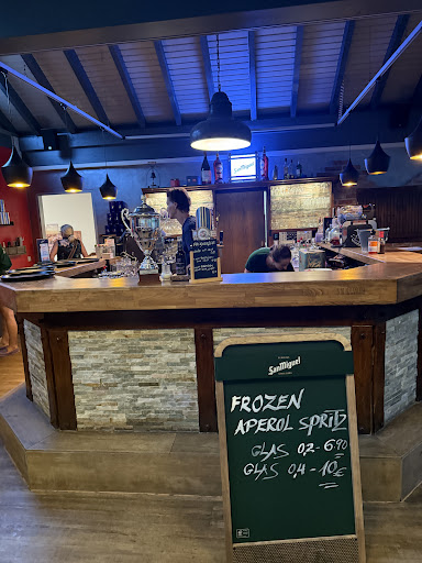 Diese Tapas Bar ist so grausig schlecht, dass ich gar nicht weiß wo ich anfangen soll! Angefangen hat das Trauerspiel bereits bei der Begrüßung! Anstatt uns herzlich zu empfangen und zu unserem Tisch zu führen, wurden wir einfach nur direkt darauf hingewiesen, dass wir unsere Reservierung über die verwendete App stornieren müssten, da ja 2 Personen weniger anwesend sein. Danach wurden wir quasi mitten im Lokal geparkt und sollten uns unseren Tisch halt aussuchen. Die ersten Getränke kamen in einer üblichen Zeit an...das einzig Positive des Abends! Das Brot mit Aioli wurde vom Kellner einfach lieblos auf den Tisch gepfeffert, genauso wie später die Tapas mehr auf den Tisch geworfen wurden, als dass sie abgestellt worden wären! Fragen zur Speisekarte konnte man keine stellen, weil einfach kein Kellner Interesse an uns hatte! Nach der Bestellung begann das große Warten! Als erstes kamen Datteln im Speckmantel! Der Bacon war komplett schwarz... Erst 20min später kamen nach und nach alle anderen Schälchen! Zu unserer Ernüchterung war einfach super viel von dem Essen Fertigware und das bei solch einem Preis! Zusätzlich wurde einfach überall Eisbergsalat lieblos in die Ecke gestopft, nahm meistens sogar die Hälfte des Tellers ein. So spart man zwar Kosten bei der Ausgabe für Speisen, aber man gewinnt garantiert keine glücklichen Kunden mit so einer billigen Augenwischerei! Ungefähr 30-40min nach allen anderen Tapas kamen dann noch die Fleischbällchen, als alle schon satt waren und das Schälchen bereits in Vergessenheit geraten war. Zwischendurch mussten wir 20min auf 2Sprites warten und ungefähr 15min auf 3 Weizen. Die Kellner waren durchweg desinteressiert, unhöflich und haben alles nur auf den Tisch geworfen. Von südländischer Herzlichkeit nicht die geringste Spur! Diesen Laden werde ich definitiv niemals...
