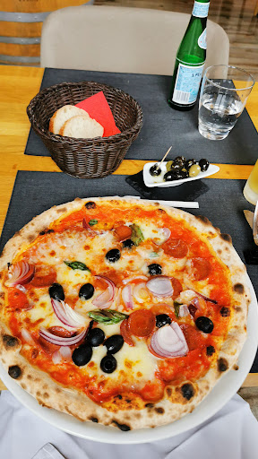 Im Großen und Ganzen kann ich das Restaurant nicht mehr weiterempfehlen, so wie ich es vor zwei Jahren kannte. Aber, die Pizzen auf den Nachbartischen haben zumindest an etwas...