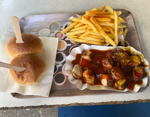 Read moreMan hört sehr oft, dass diese Imbiss-Bude Kult ist. Und das ist sie allein schon aufgrund der Tatsache, dass solche "klassischen" Imbiss-Buden nicht mehr so oft zu finden sind und diese leider durch sehr viele mittelprächtige Döner-Buden ersetzt wurden. Vorab, mein Essen war gut. Keine kalten Pommes oder vertrockneten Würstchen fanden den Weg auf meinen Teller. Die Qualität der Fleischware war für ein Imbiss sogar sehr gut. Die Currysoße hat mich im Positiven überrascht... keine wässrige Pulverbrühe, wie bei den meisten Mitbewerber, sondern eine leckere und herzhafte Soße für die man gerne wieder vorbeischaut. Das freundliche Personal und das traditionelle Imbuss-Buden-Charisma rundet mein Gesamtbild dieser Erfahrung ab. Einzig und allein die Hinterhof-Atmosphäre stört. Man steht mit seinem Essen hinter der Bude in einem Hof zwischen unappetitlichen gelben Säcken und überfüllten Mülleimern. Leute, räumt da mal auf bevor ihr ein Rattenproblem...