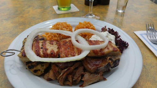 Read moreIch hatte einen Delphi Teller für knapp19 Euro mit...Bifteki...Gyros...Rinderleber...Lammkotelette...Schweinefleischspies ...Reis und Salattellerchen. Der Salat...Rohkost mit einem geschmacklosen Sahnedressing. Das Fleisch gut gegart aber ohne jedes Gewürz...lediglich das Bifteki hatte einen Hauch Thymian...das Lammkotelette schmeckte extrem nach "altem Hammel" Knoblauch hätte dem gut getan. Der Reis war absolut geschmacksneutral...hatte zwar eine rote Farbe...aber keinen Geschmack. Zusammenfassend ...fehlt hier der Mut zu würzen...von griechischer Küche erwarte ich mehr. Der Service war schnell und freundlich. Das Ambiente soll wohl den Geschmack des deutschen Touristen treffen...was man halt so für grischisch hält...ich empfand es eher erdrückend...hier fehlt die mediterane Leichtigkeit...da hilft auch der Wintergarten nicht wirklich. Es ist nur meine Meinung...Andere sehens vielleicht anders. Ich für meinen Teil muss nicht mehr hin. Es gibt griechische Resteraunts die das...