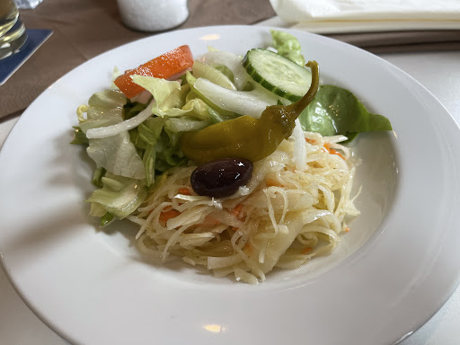 Read moreWir sind spontan mittags bei Syrtaki eingekehrt. Es war sehr leer und wir wurden gleich mit einem Glas Ouzo begrüßt. Die Bedienung war super freundlich und hat auch auf unseren Wunsch hin unserem Kind ein Schnapsglas mit Wasser gebracht, damit der Schnaps nicht gar so begehrenswert ist. Das Essen wurde schnell bestellt und auch schnell an den Tisch gebracht. Der Salat war schön frisch, die Hauptgerichte angenehm in der Portionsgröße und lecker. Ein bisschen verwunderlich war das Bifteki, wir hatten hier gefülltes Hackfleisch erwartet und nicht überbackenes Hackfleisch - war aber ggf. der Mittagskarte geschuldet. Das Ambiente scheint ein wenig in die Jahre gekommen zu sein, ist aber zweckdienlich und in Ordnung. Parken kann man übrigens im Innenhof - das hatten wir erst gesehen als wir schon im Parkhaus standen. Sollten wir wieder in der Nähe sein, kommen wir sehr...