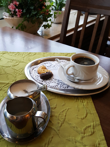 Ich habe mich entschieden, dieses Café zu besuchen, nur weil andere geschlossen sind, und dies ist auch ein Plus im Sparschwein dieser Institution. Zuerst dachte ich, es sei nur eine Bäckerei, aber es stellte sich heraus, dass es auch ein Café war. Ich setzte mich an den Tisch, sie kamen sofort auf mich zu und fragten, was ich möchte. Ich wollte nur Kaffee trinken, aber ich entschied mich auch zu essen. Die Bestellung wurde sehr schnell gebracht und das Gericht sieht recht appetitlich aus. Ich habe zuerst Kaffee probiert, und trotz des fehlenden Zuckers hatte er keine Bitterkeit, man kann wirklich die Arbeit eines guten Baristas sehen. Die Backwaren sind heiß und knusprig und stillen den Appetit sehr gut. Die Einrichtung ist gemütlich, was mir sehr gut gefallen hat. Wiegen Gemälde, Lampen im klassischen Stil, alles sieht schön und Gefolge aus. Ich denke, dieses Café verdient absolut...