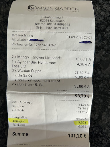 Dear Mr. Toan Nguyen, owner of Moon Garten Restaurant. I'm sorry that there was a customer service issue at your restaurant on Monday evening, January 15, 2024. We hope that customers will understand the waiters at Moon Garten Restaurant. When we worked there we were under a lot of pressure. The restaurant has around 100 seats. On busy days there are up to 180-200 guests and the main number of waiters is only 3 people. It is impossible to avoid errors in serving or when the kitchen and bar cannot function properly. It is also the waiter's fault to serve food and drinks to the guests on time. We work every evening for only €50 as our main salary, the rest we have to work hard to get tips from customers. It is the guest's right to tip or not, that's right. But Mr. Toan Nguyen, with our hard work in your restaurant, waiters like us don't have enough money to give you 30 to 35 euros every night if customers don't tip. What for??? 5€ for cleaning staff, 1% of sales 10 € must be given to you so that you can pay trainee All amounts mentioned above are invalid and not included in the employment contract. Therefore, I hope that customers understand and sympathize with the waiters who have to endure the owner's exploitation of their labor in the Moon...