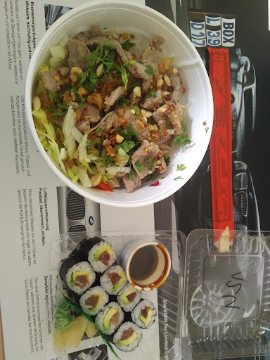 Read moreWäre das Ambiente besser hätte ich 5 Sterne gegeben... Der Imbiss wird von einer Familie geführt, die den Laden im Griff hat. Es ging zu wie im Taubenschlag. Gäste drinnen und draußen und jede Menge Leute die an der Theke abholten... Wir wählten Sushi weil wir damit schon jede Menge Erfahrung haben und auch erstklassige Restaurants in großen Metropolen kennen. Das Sushi wurde frisch zubereitet (Wartezeit 20 - 30 Minuten, was OK war) und war sehr gut. Erstklassiges Preis-Leistungsverhältnis! Getränke nahm man sich selbst aus dem großen Kühlschrank, bestellt und gezahlt wird an der Theke. Noch zum Ambiente: man sitzt an blanken Holztischen und es hat etwas Bahnhofshallenatmospäre - aber das ist OK da das Essen super ist. Wir kommen gerne wieder. Vielleicht könnte man die Öffnungszeiten auf nach 20...