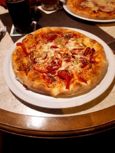 Das Ambiente des Restaurants ist ganz nett, es ist nicht zu voll gestellt, man fühlt sich wohl. Auch das Essen war sehr lecker, zumindest die Hauptgänge. Zur Vorspeise hatten wir Bruscetta, an der Knoblauch und Gewürze fehlte, gebackene Champignons, die viel zu lange in der Fritte waren und dadurch sehr trocken und hast wurden, und als drittes Scampis auf einem Salatbett. Eindeutig ein Tk produkt von kaufland, was zwar gut gegart wurde, allerdings im Anschluss in einem einfachen French dressing vollkommen ertränkt wurde. Die Pizzen waren super, sowohl gut belegt als auch der Boden. Auch die Schweinemedaillions waren gut. Einzig die Rigatoni Cubana waren zwar auch lecker, aber von der angegebenen Schärfe in der Speisekarte war nichts zu spüren. Und nun zum Service...wir haben den ganzen Abend weder von der Dame noch von dem Herren mal ein lächeln bekommen. Es wird einfach stupide abgearbeitet ohne Freude an dem job zu haben, das kommt bei beiden leider sehr deutlich rüber. Wartezeit für die Vorspeise betrug 45 Minuten, Hauptspeise hatten wir nach 1:10 Stunde. Teller der Vorspeise wurden nicht abgeräumt, so das wir als die Hauptspeise kam etwas in Platznot kamen. Während der ganzen Zeit wurde nicht einmal gefragt ob es noch was trinken sein dürfte. Unsere Gläser waren schon zur Vorspeise leer. Bestellt haben wir dann nach dem Hauptgang. Liebes Team vom bella italia, so tut ihr euch kein Gefallen, man hat nicht wirklich den Eindruck gern gesehen zu sein, man hat auch nicht den Eindruck als ob ihr Spaß an der Arbeit habt. Leidenschaft und liebe zum Detail auch im Umgang mit euren Gästen fehlt euch komplett. So kann es leider nichts werden, wir werden nicht...