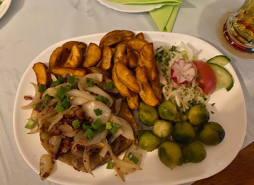 Wir waren an einem Donnerstagabend da, dadurch war es nicht voll gewesen und wir mussten auch nicht lange auf unser Essen warten. Das Essen hatte allen gut geschmeckt und die Portionen waren teilweise sehr groß. Ich musste echt zusehen, dass ich mein Bauernfrühstück überhaupt schaffe. Die Preise waren für die Gerichte in Ordnung und der Service war schnell und zuvorkommend. Also, ich würde...