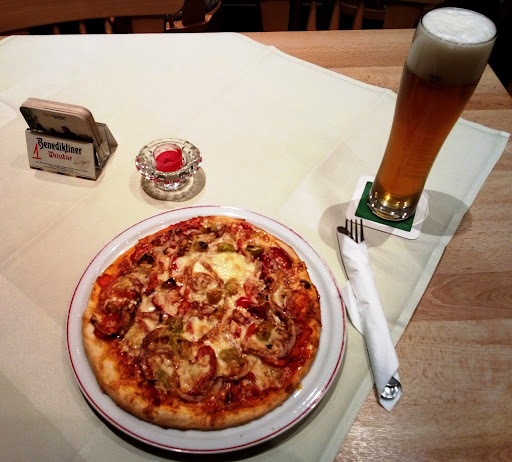 Hier hat in der ehemaligen "Alten Molkerei" ein neues Lokal, die Pizzeria Canoli neu aufgemacht. Ich kam hier zufällig an einem Dienstag vor und habe mich gewundert, warum Licht ist, aber keine Gäste da sind. Mir wurde gesagt, dass dienstags eigentlich geschlossen ist, das Personal aber da sei und man mir trotzdem etwas zu Essen machen kann, da sie offensichtlich eine größere Lieferung hatten. Das fand ich schon mal sehr nett. Hier wurde ich dann auch aufmerksam und nett bedient. Das Ambiente ist nicht überragend aber OK. Die Möbel sind offensichtlich ganz neu. Es gibt eine Menge Sitzplätze. Es gibt vor dem Lokal auch einen Biergarten. Das Lokal bietet auch einen Abhol- und Lieferservice. Vor dem Lokal gibt es kostenlose Parkplätze. Auf der Speisekarte gibt es eine gute Auswahl zu günstigen bis sehr günstigen Preise. Es gibt hier auch sehr günstigen Mittagstisch. Ebenfalls Sonderaktionen, die auch sehr günstig sind. Meine Pizza Mafiosi hat gut 10 Minuten gedauert und war recht gut. Die Zeit lag möglicherweise daran, dass der Ofen noch angeheizt werden musst, da sie ja eigentlich nicht auf hatten. Der Teig der Pizza war leider außen hart und recht krümelig, da hat man leider gemerkt, dass es keine italienische Qualität ist. Die Beläge waren sehr gut und frisch und die Pizza hat insgesamt auch gut geschmeckt. Mein Teller war irgendwie merkwürdig. Immer wenn ich nicht genau in der Mitte geschnitten habe, ist der Teller an einer Seite hoch gewippt. Insgesamt war das Personal sehr nett, die Speisen sind günstig...
