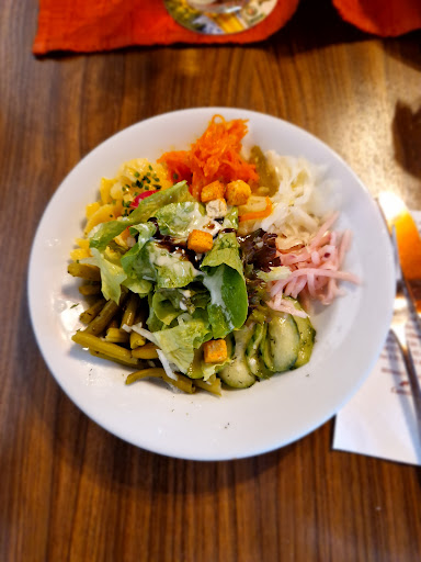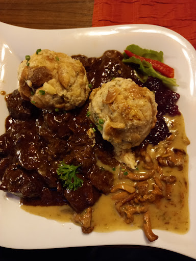 Das Essen? Der Salat ist vollkommen überlagert, selten so schlechte Gurken und so schlechten grünen Salat gegessen bzw. NICHT gegessen (ging zurück, war ungenießbar). Das Cordon Bleu mit Pfifferlingen kostet fast 28 Euro und schmeckt wie Seife. Die Panade ist nicht knusprig und schmeckt wirklich absonderlich. Das Schwabenpfännle ist halt ein Topf in dem alles gleichzeitig rumschwimmt - dafür reichlich. Gekaufte Spätzle, Schweinefilet, eine undefinierbare Soße. Die Rösti sind ebenfalls nicht selbst gemacht und schmecken daher eben wie die von Aldi, wie soll es auch anders sein wenn man nur zukauft!? Handwerklich war eigentlich nur das Schweinefilet selbst gut gemacht, alle anderen Essen waren unterdurchschnittlich. Wir bezweifeln, dass das ein ausgebildeter Koch zubereitet hat.