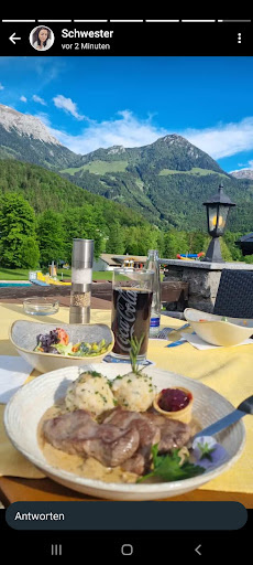 Read moreWhen we arrived we were pleasantly surprised to see our names chalked up on a welcome board outside the front door. A very nice touch.||||The bedroom was comfortable and well appointed, with a magnificent view of the mountains. The restaurant was most attractive, and the food was excellent. But be warned, if you choose the "hausgemachter windbeutel" dessert you will certainly enjoy it, but might find yourself sliding under the table as a result of over indulgence. Maybe the other desserts are served in similarly gargantuan portions too, in which case tuck in and enjoy yourself.||||An interesting feature was that the hotel closes on a Tuesday, so don't plan to arrive that day. They serve breakfast in the morning, and come up with suggestions for where one might like to eat in the evening. Guests are free to enter and leave the hotel using their room keys, but an unmanned hotel feels a little strange. It's not a problem, just an...