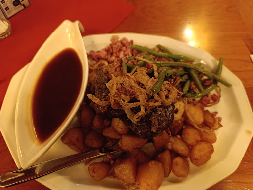 Leider nicht empfehlenswert. Fazit vorweg: durchschnittlicher Service, unterdurchschnittliches Essen und der Chef versteht leider sein Handwerk gar nicht. Im Detail: Der Service ist sehr freundlich, man wird aber häufig vergessen und beim Abräumen wird auch nicht nach Feedback gefragt. Dann hätte ich auch direkt mitteilen können, dass die Kasprotzn leider kaum genießbar waren. Sie waren angebrannt und diese (leider übertriebenen) Rostaromen waren das Einzige, was geschmacklich ankam. Auch ordentlich Salz konnte nicht wirklich helfen. Ich hatte den Kellner vor meiner Bestellung gefragt, ob es eine ordentliche Portion wäre, da ich richtig hunger hatte. Er bejahte das. Leider lag er falsch. Die Portion ist nicht nur geschmacklich dünn, sondern auch in der Quantität. Ich war vor drei Tagen schon hier und da wurde erst ich als Gast übersehen (ich bin 1,9m) und dann haben sie meine Bestellungen mehrfach vergessen. Hatte ich ganz entspannt mitgeteilt, die Schuld wurde auf den Kollegen "übertragen"; den angebotenen Schnaps wollte ich nicht. Jetzt leider wieder ein Reinfall. Nur Kartenzahlung rundet die doppelte Enttäuschung ab. Ich komme nicht wieder. Schade, keine Empfehlung. Update: nach meinem sehr sachlichen Feedback an den Kellner, hat dieser sofort den Chef geholt. Er hat sich alles angehört und war dann froh, dass ich schon am gehen war. Seine Reaktion: "wir lassen unsere Käsespätzle gerne anbrennen" und zur Portionsgröße meinte er "für 80 Leute reicht's. Woher sollen wir wissen, dass du eine noch größere Portion willst?" Ich: "weil ich es dem Kellner gesagt hatte". Ach so, dann ist er geschmeidig zum nächsten Gast und ich bin raus. Ein Angebot für irgendwas gab's auch nicht. Dafür gibt's muss ich leider noch einen Stern abziehen. Daher auch das...