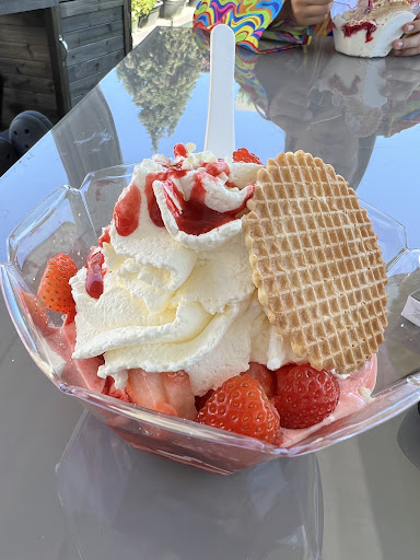 Das leckerste Eis, das ich seit langem gegessen habe. Dir Eisdiele wird als Familienbetrieb geführt und das merkt man sofort, die ganze Familie hilft mit was irgendwie zur Sympathie des Ladens beiträgt. Sie bieten übrigens nebens verschiedene Wahlsoßen auch eine hausgemachte Erdbeersoße an. Ich habe diese nich probiert aber neben uns kam eine Gruppe von 6 Personen die wohl regelmäßig dort sind und alle meinten, dass diese fantastisch ist. Das kann ich mir auch gut vorstellen, denn das Eis war wirklich von Qualität. Voll im Geschmack, nicht zu süß...einfach perfekt und dabei noch hübsch angerichtet. Was wir beide auch echt süß fanden, wenn man sich ein Heißgetränk bestellt kommt dieses mit einem Minieis. Leider wohne ich nicht in der Nähe um öfter zu kommen, aber das Eis war so gut, dass ich wann immer es möglich ist vorbei...