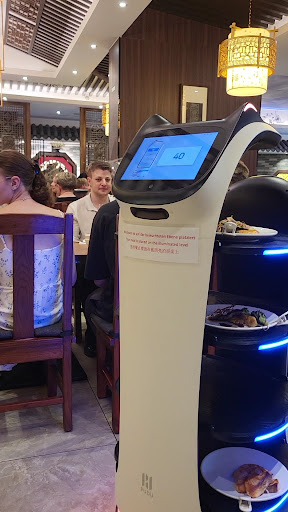 Read moreVor Jahren war dieses Restaurant schon angekündigt, dann kam Corona und was auch immer noch für Herausforderungen und nun, endlich am 10.02.23, war es endlich soweit. Jahrelang haben wir auf die Eröffnung gewartet, da wir fußläufig entfernt wohnten. Inzwischen sind wir umgezogen, aber wir haben es uns nicht nehmen lassen, aus dem 20 min entfernten Rotberg vorbeizuschauen und sind positiv überrascht. Außen zwei goldene Statuen, die schon etwas hermachen. Kommt man in das Restaurant steht man im Eingangsbereich mit Couch und Sesseln, der einem das Warten auf weitere Verwandte/Bekannte/Freunde wirklich leicht macht. Tolle Idee. Hervorzuheben ist die nette, junge Frau am Empfang/Eingang. Sehr freundlich. Wir wurden sehr, sehr nett willkommen geheißen. Sie hat uns das Restaurant gezeigt, auch dass es separate Räumlichkeiten für 5, 10 oder 30 Personen mit runden Tischen gibt, wenn man einmal unter sich sein möchte. Ich war überrascht, wie groß das Restaurant ist. Das Buffet ließ bei uns keine Wünsche übrig, von Sushi, Pommes, Süßkartoffelpommes, Huhn, Ente, Fisch, Suppen bis hin zu Kuchen, Obst, Softeis...Ich persönlich würde auch noch normal gebratenes Huhn mit dunkler Soße mit Bambus, Morcheln usw. nehmen, vielleicht kommt das ja auch noch. Muss aber nicht... Ich finde, alles da. Man kann sich auch Frisches separat braten lassen (Huhn, Fisch, aber auch Hai, Känguruh...). Highlight: Ein Roboter fährt die gebratenen Produkte allein an den Tisch. Das Display hat ein Katzendesign, er spricht und bittet darum, durchgelassen zu werden, wenn der Weg versperrt ist. Er sagt an, welches Gericht (Nr) gerade geliefert wird, dann nimmt man sich den Teller herunter und drückt "Fertig" auf dem Display. Der Roboter wünscht guten Appetit und fährt wieder los. Supertoll, gerade auch für Kinder :-) Aber ich glaube, der ist nur am WE und in der Woche abends "im Dienst"...Sehr aufmerksame Mitarbeiter*innen! Ein Gast hat versehentlich einen Teller fallen lassen. Der Mitarbeiter hat als Erstes geschaut, ob der Gast sich verletzt hat und sich um ihn gesorgt. Fand ich wirklich toll. Als wir gingen hat uns die nette Mitarbeiterin am Eingang noch freundlich gefragt, wie es uns gefallen hat, ob es geschmeckt hat und unsere Tochter bekam noch einen Lolli. Fazit: Toll, machen Sie weiter so! Schön, dass Sie die ganzen Jahre durchgehalten haben und tatsächlich noch eröffnen konnten. Wir freuen uns! Ich hoffe, Sie haben ganz viel Erfolg und bleiben uns in Schönefeld ganz lange erhalten!