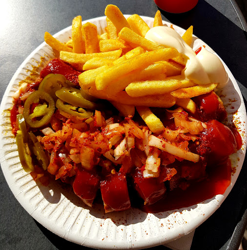 Es ist immer wieder ein Genuss hier her zu kommen. Alles ist gut beschrieben, man weiß was im Essen steckt. Man kann bei den Bratwürsten wählen mit oder ohne Darm. Auch kann man seinen Schärfegrad der Currywurst selber wählen, ob lecker Scharf oder Vulkanausbruch im Mund ;-) Die Pommes sind knusprig und super gewürzt und die gängigsten Getränke sind auch bestellbar. Das ganz wird dann serviert vom sehr netten Personal, das mit Charme und Witz einfach super überzeugt. Es lohnt sich hier einen Abstecher her zu machen. Kleiner Tip: Die Currywurst mit Pommes, einfach mal lecker scharf...