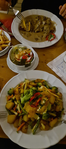 Read moreDie Portion ist sehr gross, die Kartoffelecken waren lecker, der Burger mit der dicken panierten Scheibe Sellerie ( war das Essen unseres Freundes) hat garnicht geschmeckt, die Soße darauf auch nicht. Getränke sind sehr teuer, Apfelschorle 5,50€. Auf das Essen mussten wir über eine Stunde (70 min.) warten, Tisch war reserviert. Opas Stube hatte eine riesige Tafel mit Gästen und einem kleinen Tisch für uns, fühlten uns dort nicht sehr wohl. Nachtrag: Ich möchte noch kurz betonen dass das Frühstück hier immer spitze ist und war! Es ging einzig und allein um diesen Abend, der für mich sehr wichtig war. Eigene Kritik zu äußern ist hier nicht gewünscht, mit dem Kommentar " meine Kritik wäre nicht sachlich, (bei 70 min.) Wartezeit müsste ich Verständnis haben. Das Sofa in Opas Stube (welches ich garnicht kritisiert habe, sondern die einzige große Feier in diesem Zimmer!) Fazit: Ich habe einfach Pech gehabt und Kritik zu äußern ist nicht gewünscht, an dem für mich sehr besonderen Tag der sich "...