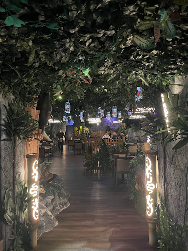 Wir haben Urlaub in Timmendorf gemacht und wollten unbedingt das Jungle ausprobieren da uns das Konzept sehr angesprochen hat und es mal „was anderes“ ist. Allein die Aufmachung ist super. Tolle Atmosphäre und die beweglichen Tiere und die Dschungel Atmosphäre kommt super rüber. Auch der Wechsel zwischen Tag und Nacht und zwischendurch mal ein Gewitter oder Brand ist richtig cool. Und das macht schon eine Erlebnisgastronomie aus.
