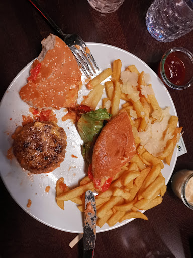 Zum Essen: Wir waren mit dem Essen sehr zufrieden. Wir hatte. 3x chicken burger und 1x bbq cheeseburger. Die Portionen waren groß. Beim chicken 2 planierte Fleisch Stücke in einer leckeren Panade. Trocken oder so war dabei gar nichts. Sondern sehr lecker und gut gewürzt. Auch die Saucen und der Belag sehr gut. Die Pommes waren sehr kross frittiert und auch ausreichend. Wir fanden sie lecker. Sehr gut hat mir auch die BBQ Sauce geschmeckt. Am Ende waren wir alle super satt. Für den Preis 18,90 bzw 22,90 für den Cheeseburger sollte man auch eine entsprechende Menge erwarten können.